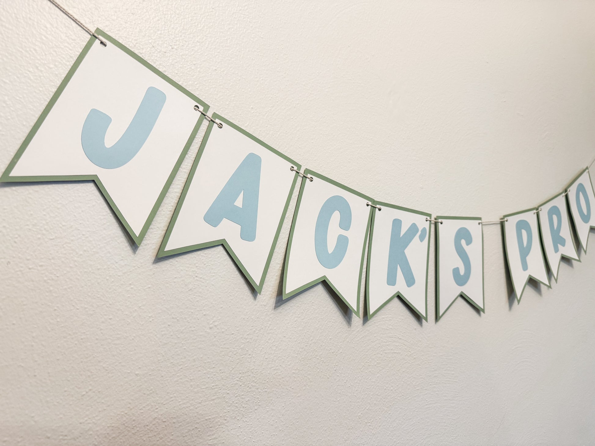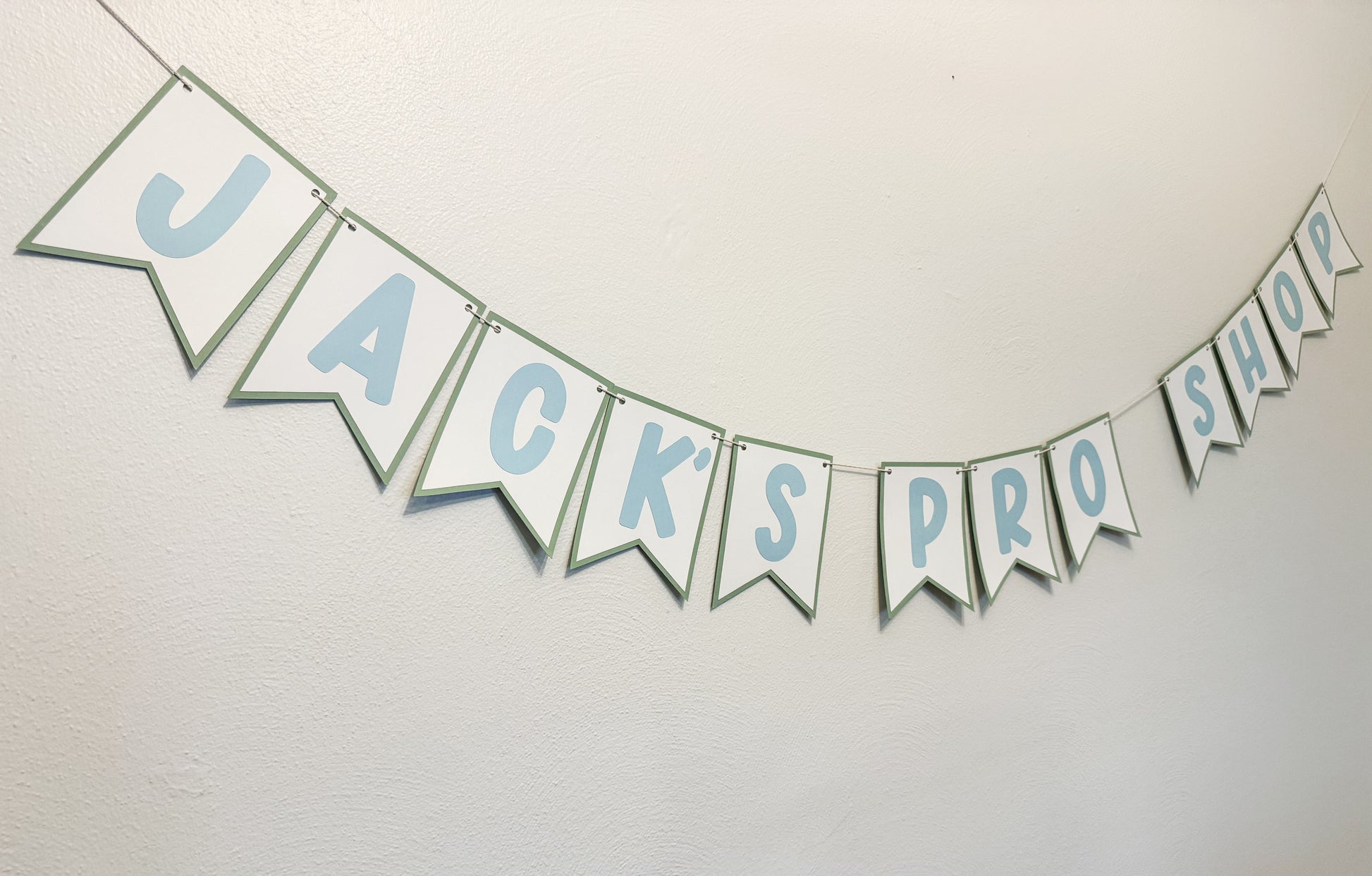 Turn your party space into a mini pro shop! This personalized golf banner is the perfect backdrop for your little one’s birthday. Each flag is layered with cardstock and strung on twine, making setup quick and easy.