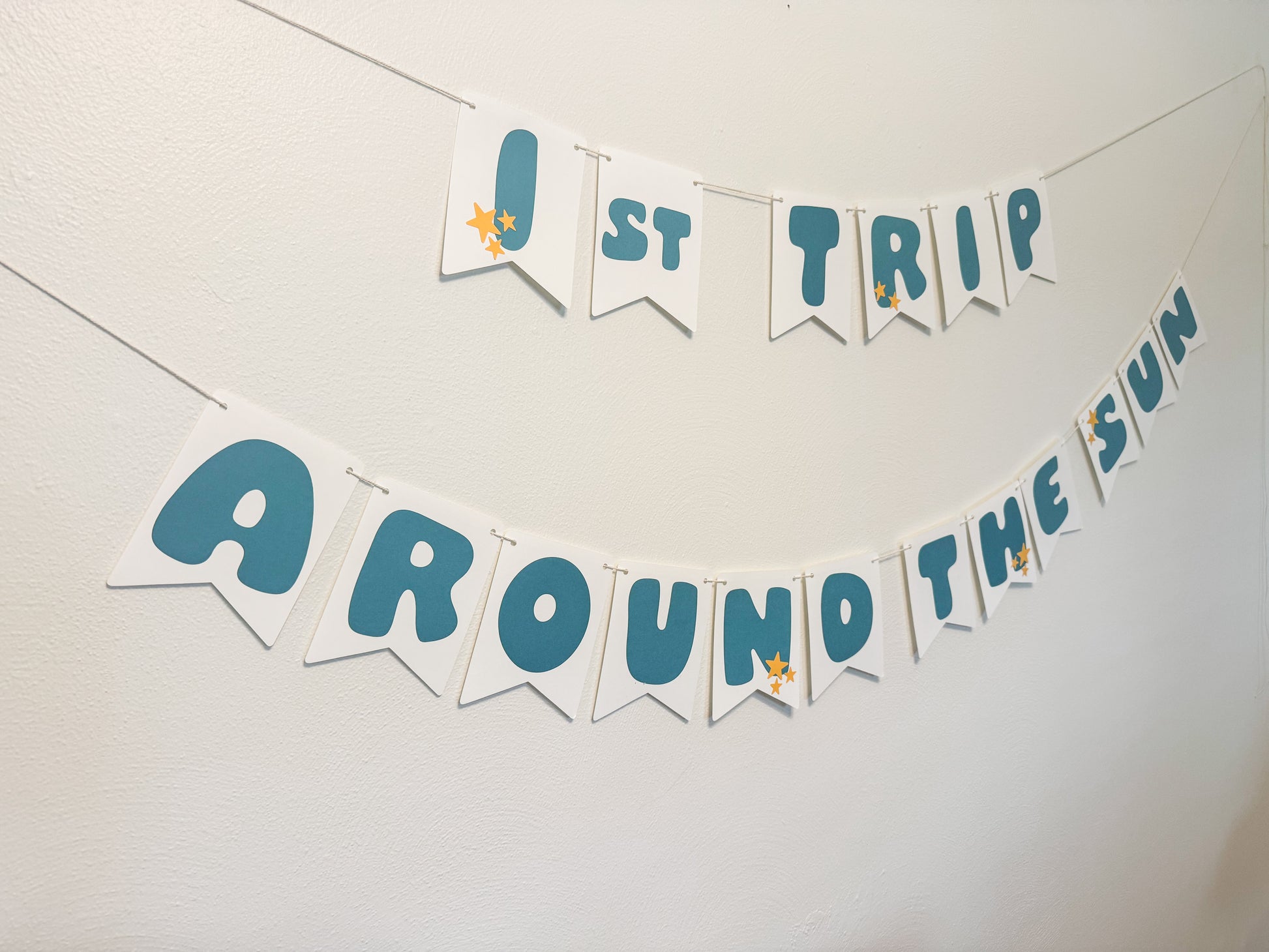 - 1 large banner: “1st Trip Around the Sun” with stars & planets accents